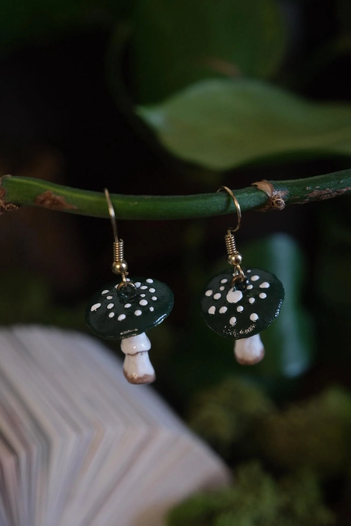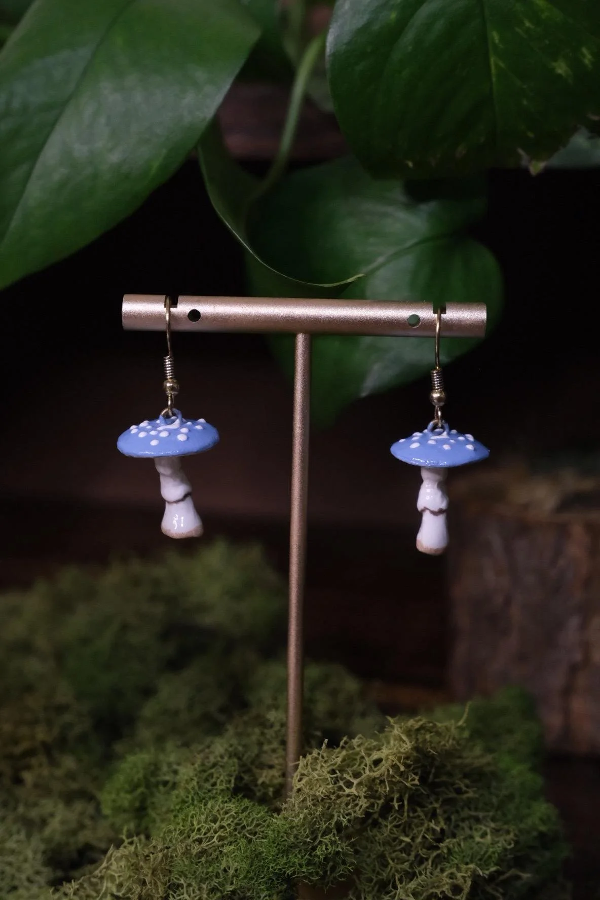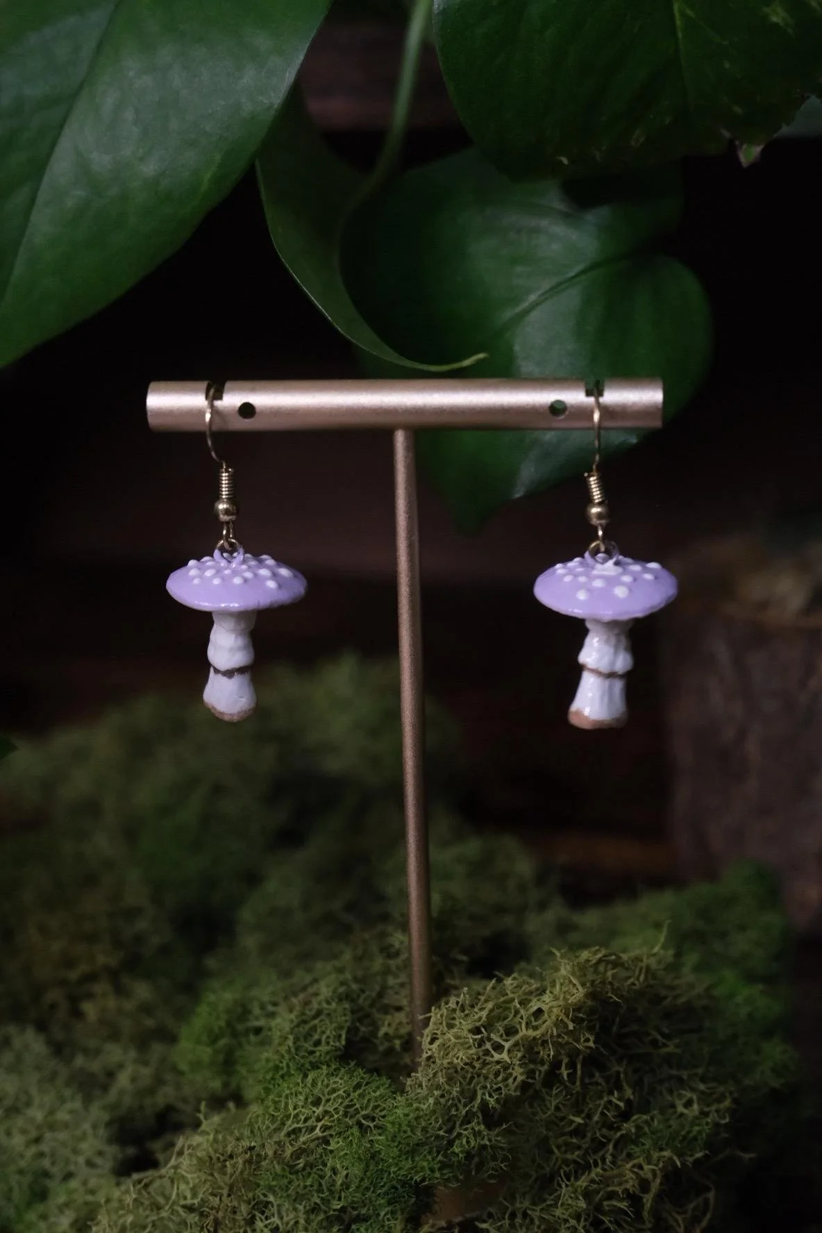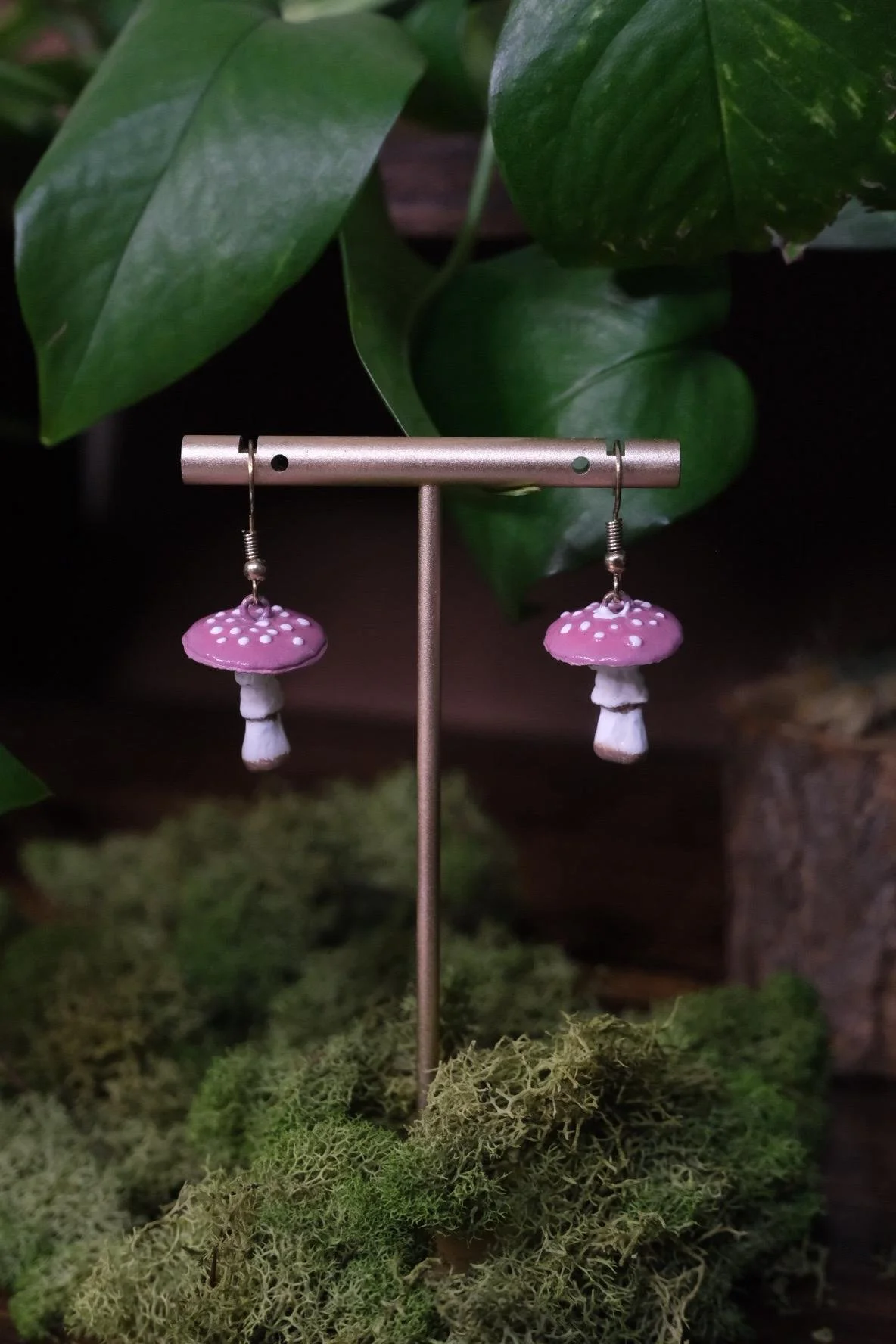 Each pair is sculpted and painted by hand, making every mushroom earring perfectly unique